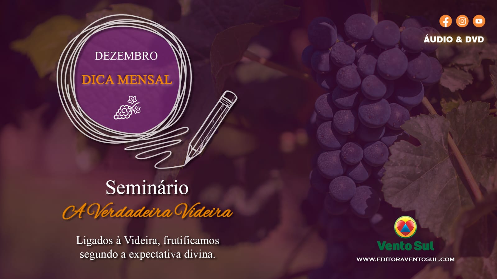 Ministério da Palavra liberou a dica de estudo do mês de dezembro, o seminário A Verdadeira Videira. Saiba mais sobre o seminário no site da editora Vento Sul.